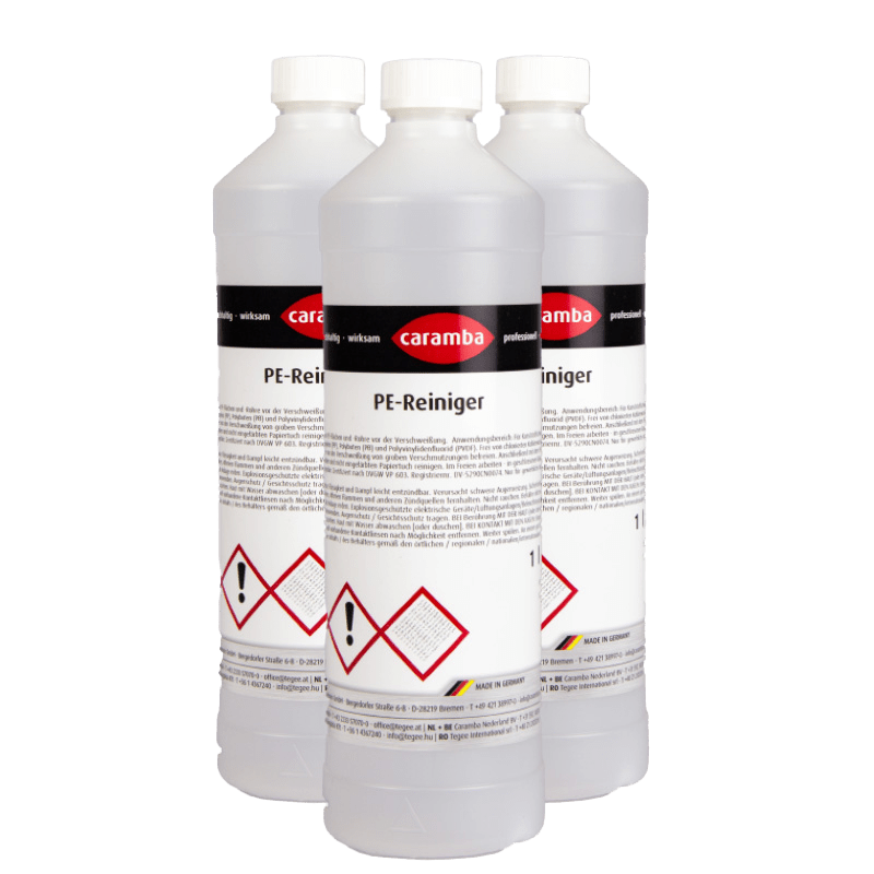 Unser PE-Reiniger wird in praktischen 1000-ml-Flaschen angeboten und zeichnet sich durch herausragende Reinigungseigenschaften aus. Er ist die ideale Lösung zur gründlichen Reinigung und Entfettung von Kunststoffoberflächen und eignet sich besonders gut als Vorbereitung für Kunststoffschweißverbindungen beim Muffen-, Stumpf- oder Extruderschweißen.